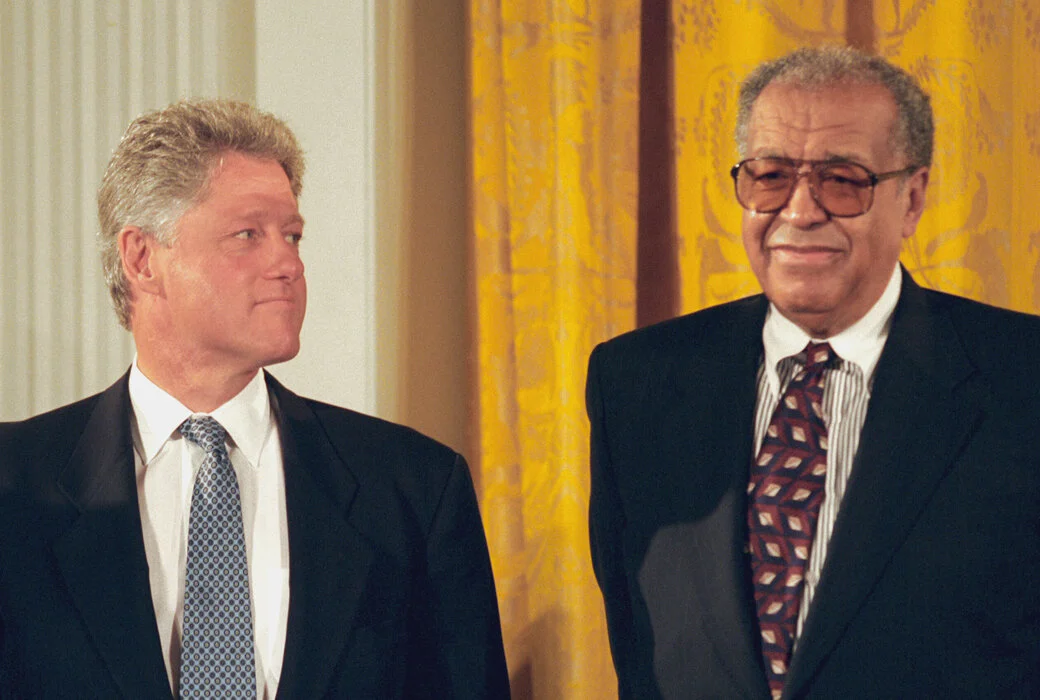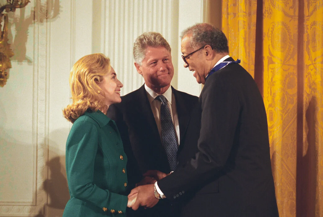 Judge Higginbotham with President Clinton. Photo taken by the White House at a Medal of Freedom ceremony. Provided by the William Clinton Presidential Library.